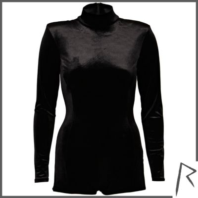 BLACK RIHANNA VELVET TURTLE NECK PLAYSUIT